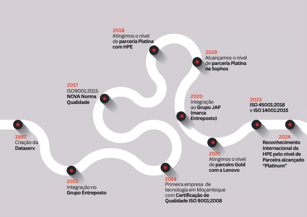Fundada em 1992, a Dataserv passou a integrar o universo do Grupo Entreposto em Moçambique, desde 2011 na sequência da aquisição da totalidade do seu capital aos sócios fundadores.